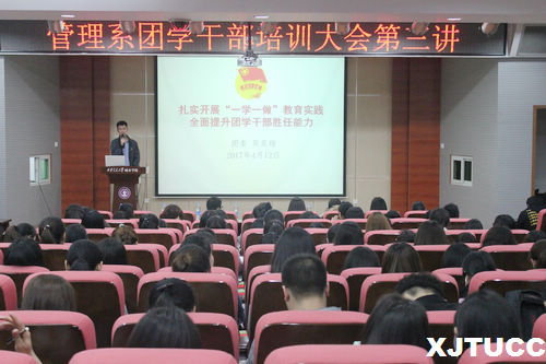 为深入学习习近平总书记系列重要讲话精神,深入推进共青团改革,大力推进从严治团,切实增强团员的先进性和光荣感,提高员工干部的思想觉悟,加强干部间的沟通与交流能力,管理系于4月13日在f100召开了团学干部培训大会第三讲。莅临本次大会的嘉宾有学院团委书记吴昊翔、管理系团工委书记韩珺、学工办全体老师。